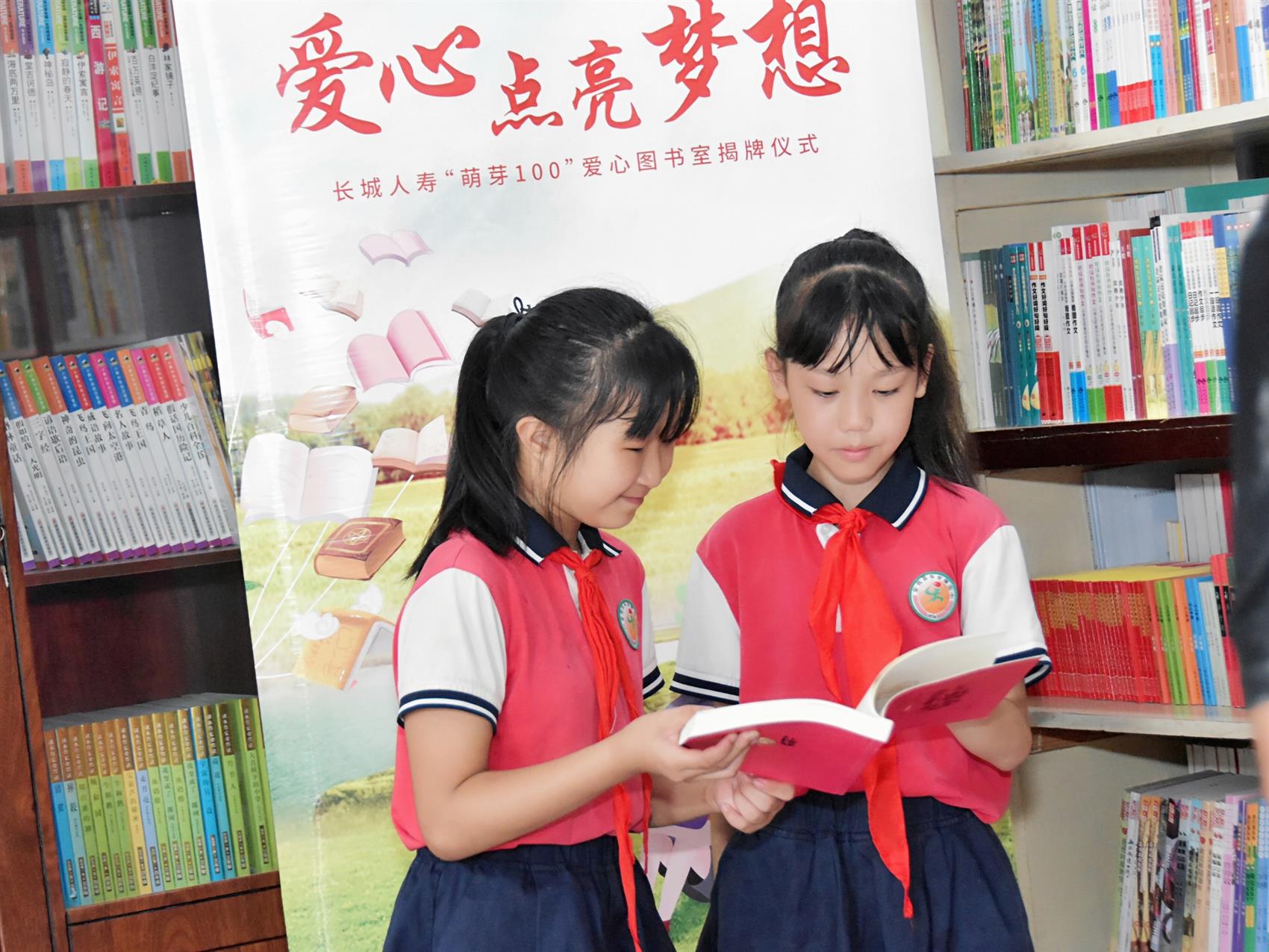 “萌芽100”爱心图书室项目是长城人寿于2009年自主创建和实施的公益项目,旨在通过向农村贫困地区及城镇农民工子弟小学捐建可持久使用的爱心图书室,以百分百的真诚和奉献,为孩子们提供百分百的温暖与关爱,推动偏远地区教育发展,助力实现平等教育。