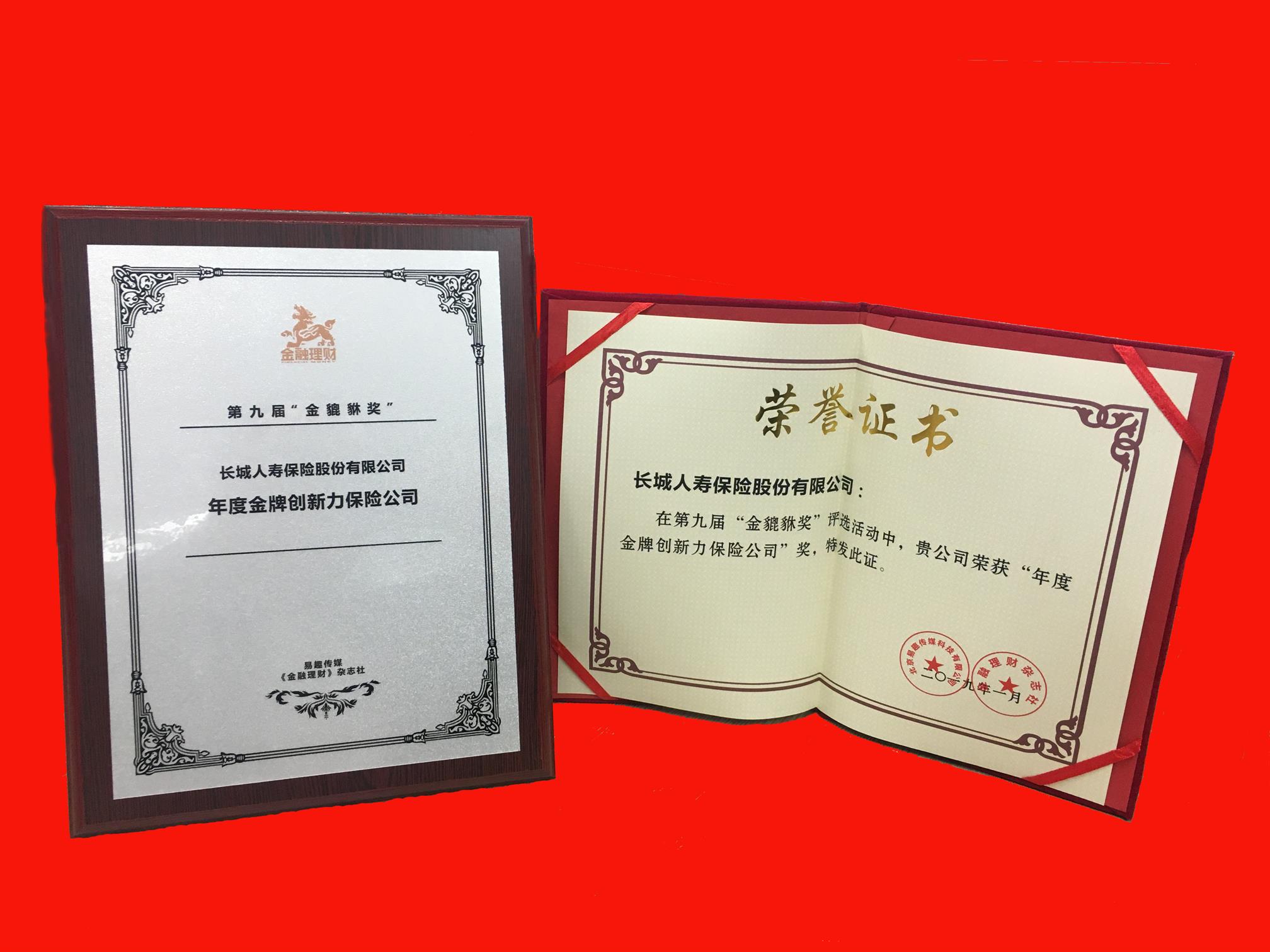 长城人寿获评2018第九届金貔貅奖“年度金牌创新力保险公司”