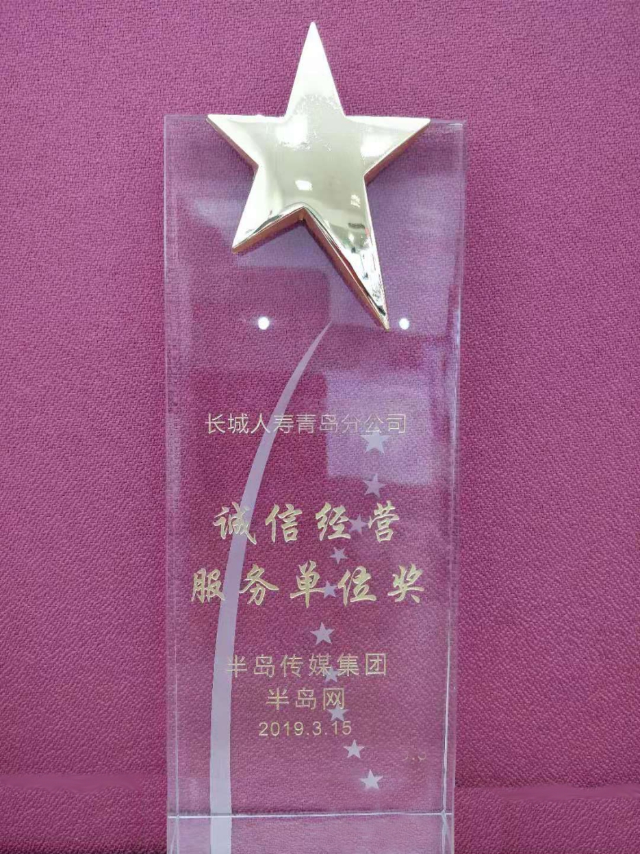 2019年3月,在半岛网“‘信用让消费更放心’—3.15保险行业诚信企业”专题活动中,长城人寿青岛分公司凭借多年诚信服务荣获“诚信经营服务单位”称号。
