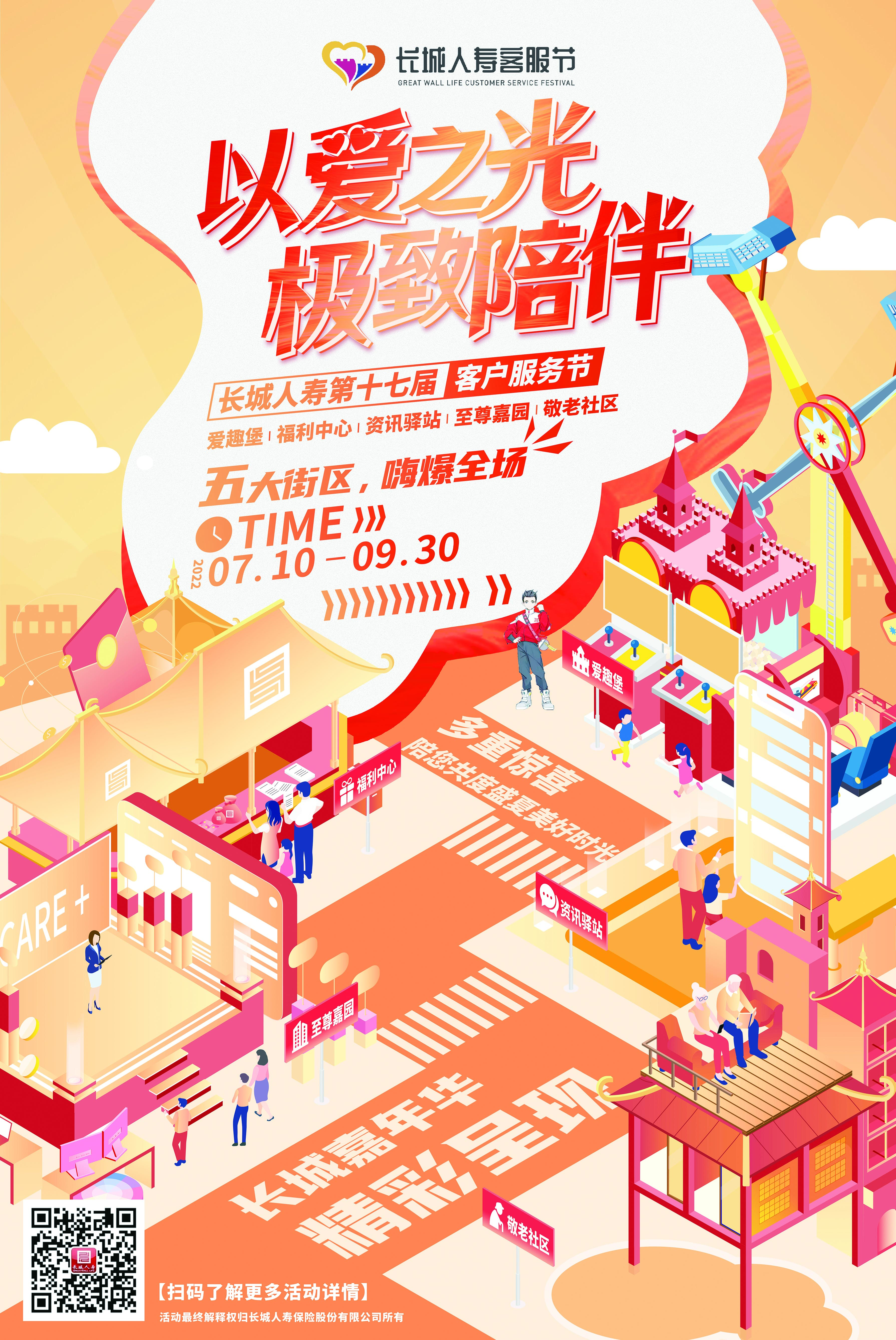 7月10日,长城人寿第十七届客户服务节完美开幕,此届客服节主题为“以爱之光 极致陪伴”,长城人寿围绕产品推广、服务升级、健康养老等内容,精心打造“长城嘉年华”趣味街区,通过五大街区的互动活动,向客户传递长城人寿的爱与陪伴。