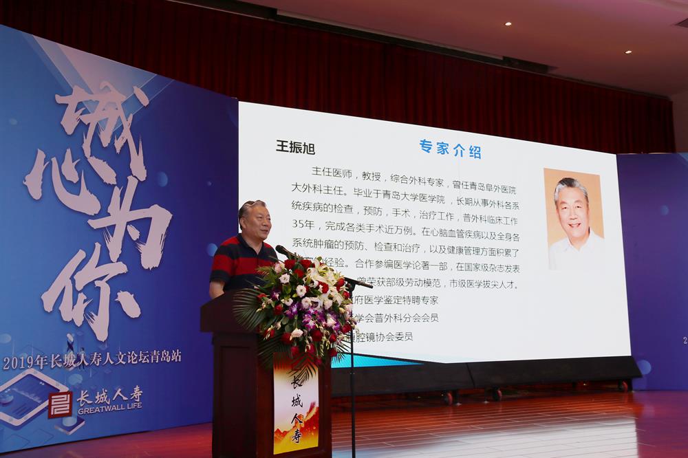 本次论坛特别邀请知名医学专家、青岛市政府医学鉴定特聘专家王振旭教授为现场客户进行心脑血管疾病及肿瘤预防的公益健康讲座。王教授有35年的临床工作经验,在心脑血管疾病以及全身各系统肿瘤的预防、检查和治疗方面积累了丰富的经验,他介绍了心脑血管疾病及肿瘤的病因及预防方法、检查治疗方案等,表示希望大家重视自身与家人的健康,通过合理膳食、适当运动、定期体检,养成健康的生活方式。讲座内容丰富详实,深受现场客户的好评。