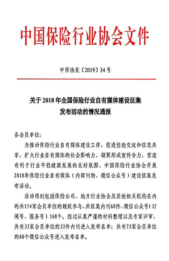 新闻来源:长城人寿    日期:2019-07-05         2019年6月18日,中保协公布了2018年保险行业自有媒体建设征集发布榜单入选单位,长城人寿官方微信服务号入选“行业责任建设”名单。此次评比活动共154家会员单位踊跃参与,此次入选单位具有一定的责任担当,自觉站在行业角度进行监管政策和保险知识普及,开展行业形象的打造和传播。