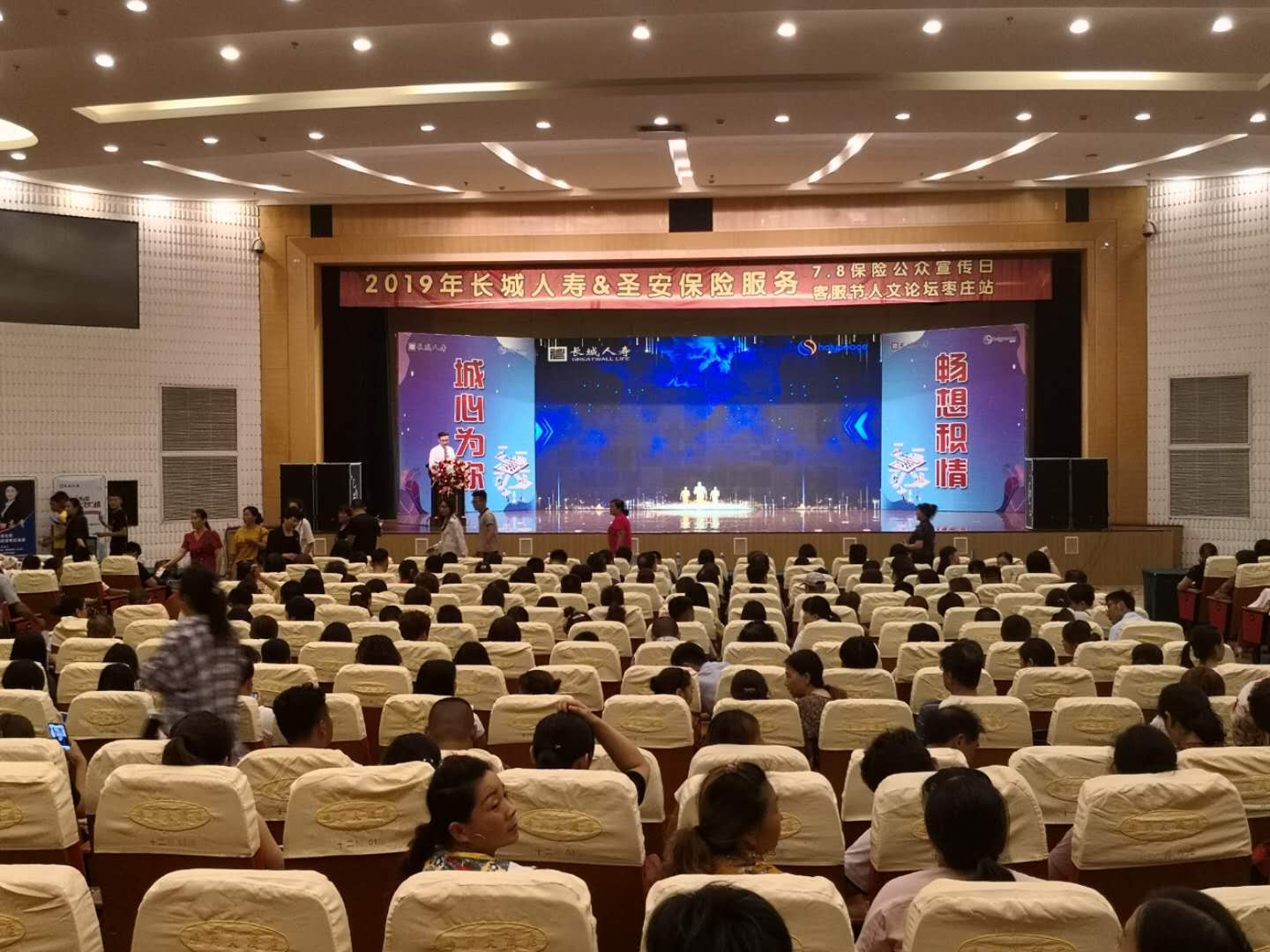 7月6日,长城人寿2019年客户服务节首场人文论坛在山东枣庄隆重举行。公司银保总监顾以良、经代团险部负责人王恺、客户服务部总经理助理王霞、山东分公司副总经理韩秀丽、以及枣庄地区客户代表500余人参加此次活动。