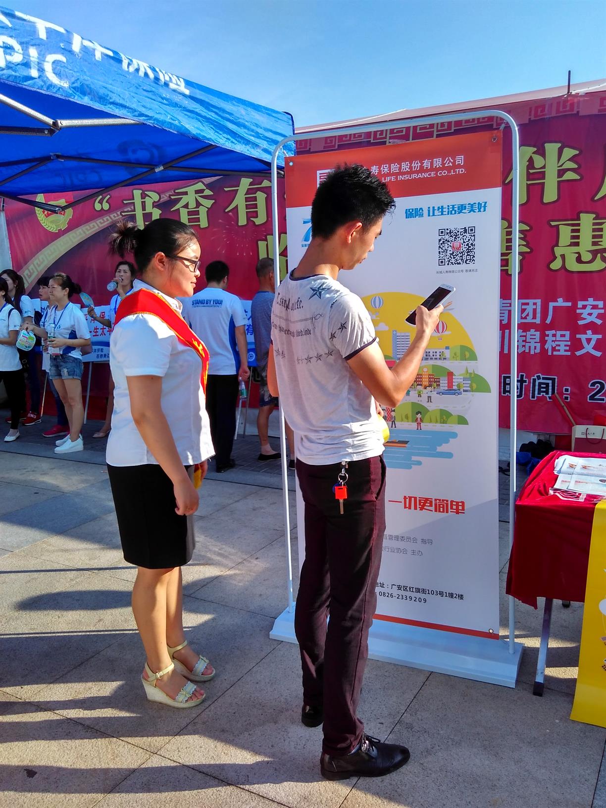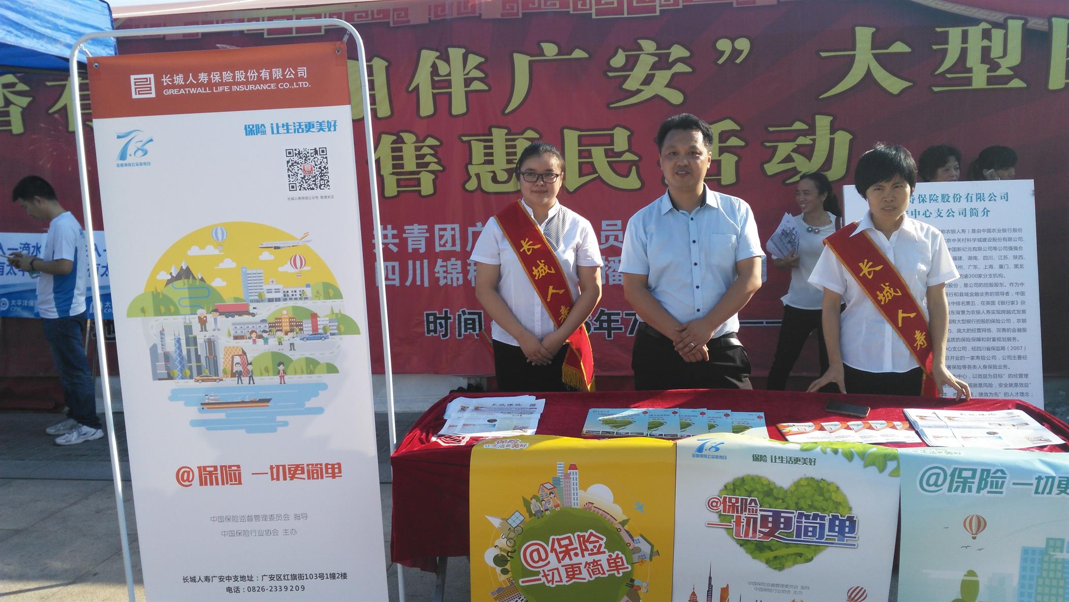 今年7月8日是第四个“全国保险公众宣传日”,活动当日,广安市保险行业协会组织起了25家当地的产、寿险公司,举办了声势浩大的宣传活动。长城人寿广安中支作为其中一家寿险公司,积极参与当天活动。
