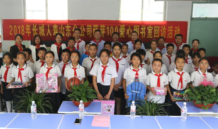 2018年6月7日,长城人寿党委书记祝艳辉、个险总监张刚等一行来到山东省淄博市博山区崮山镇福和希望小学,开展“萌芽100”爱心图书室回访活动。