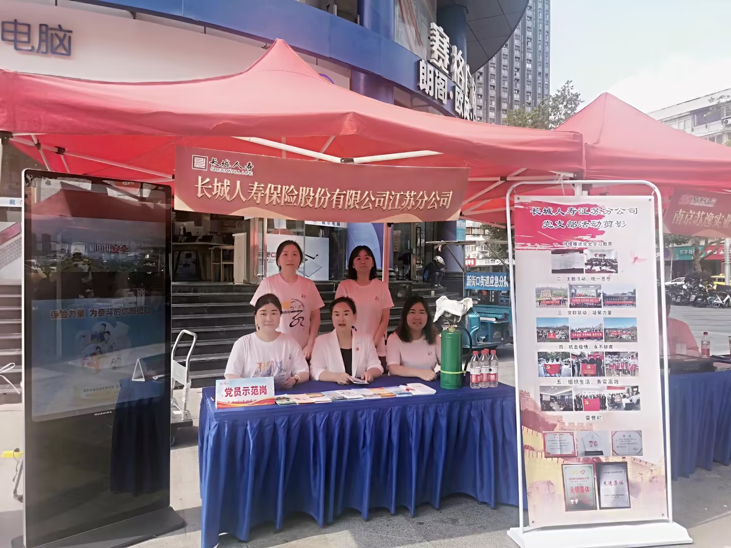 在这次展销市集活动上,长城人寿江苏分公司积极参加宁小蜂“爱心餐”活动,同时分公司还依托图片展形式,向广大群众展示了支部近年来的党建工作成果,得到了广大参展企业与群众的一致好评。