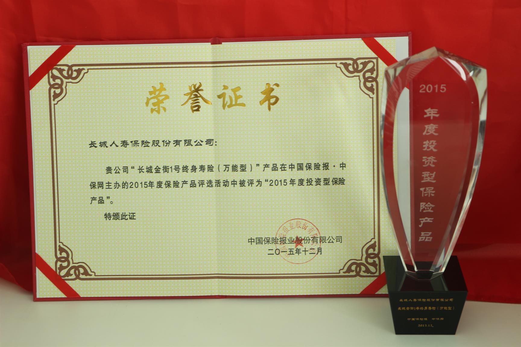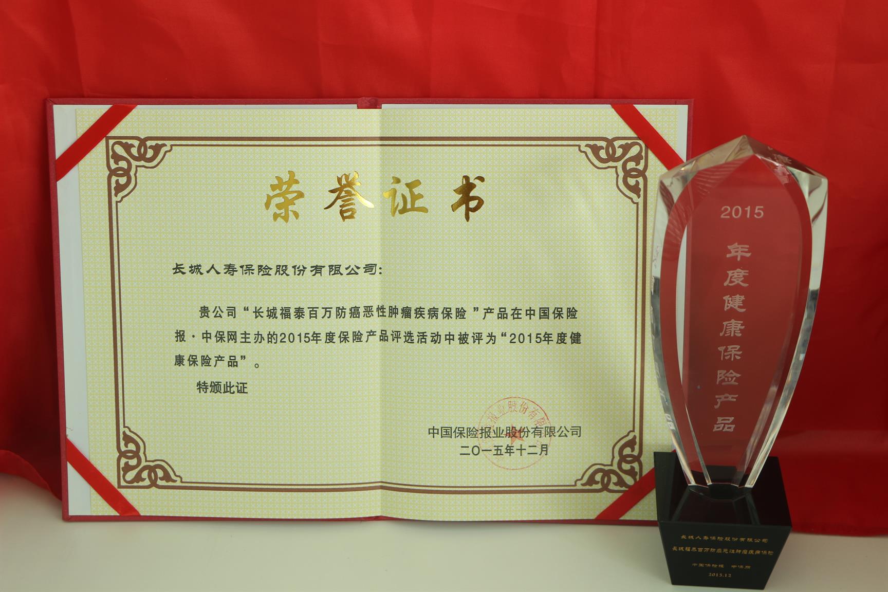 4月22日,2016保险产品创新论坛暨2015年度保险产品颁奖典礼在北京举行。长城人寿的长城福泰百万防癌险等三款保险产品荣获“年度保险产品”称号。