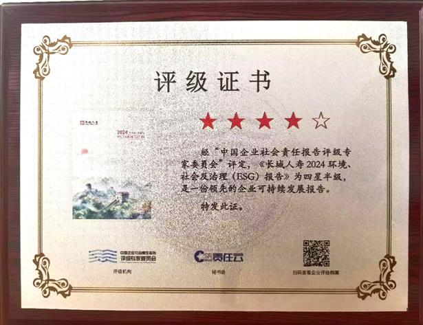 长城人寿2024环境、社会及治理(ESG)报告获四星半评级