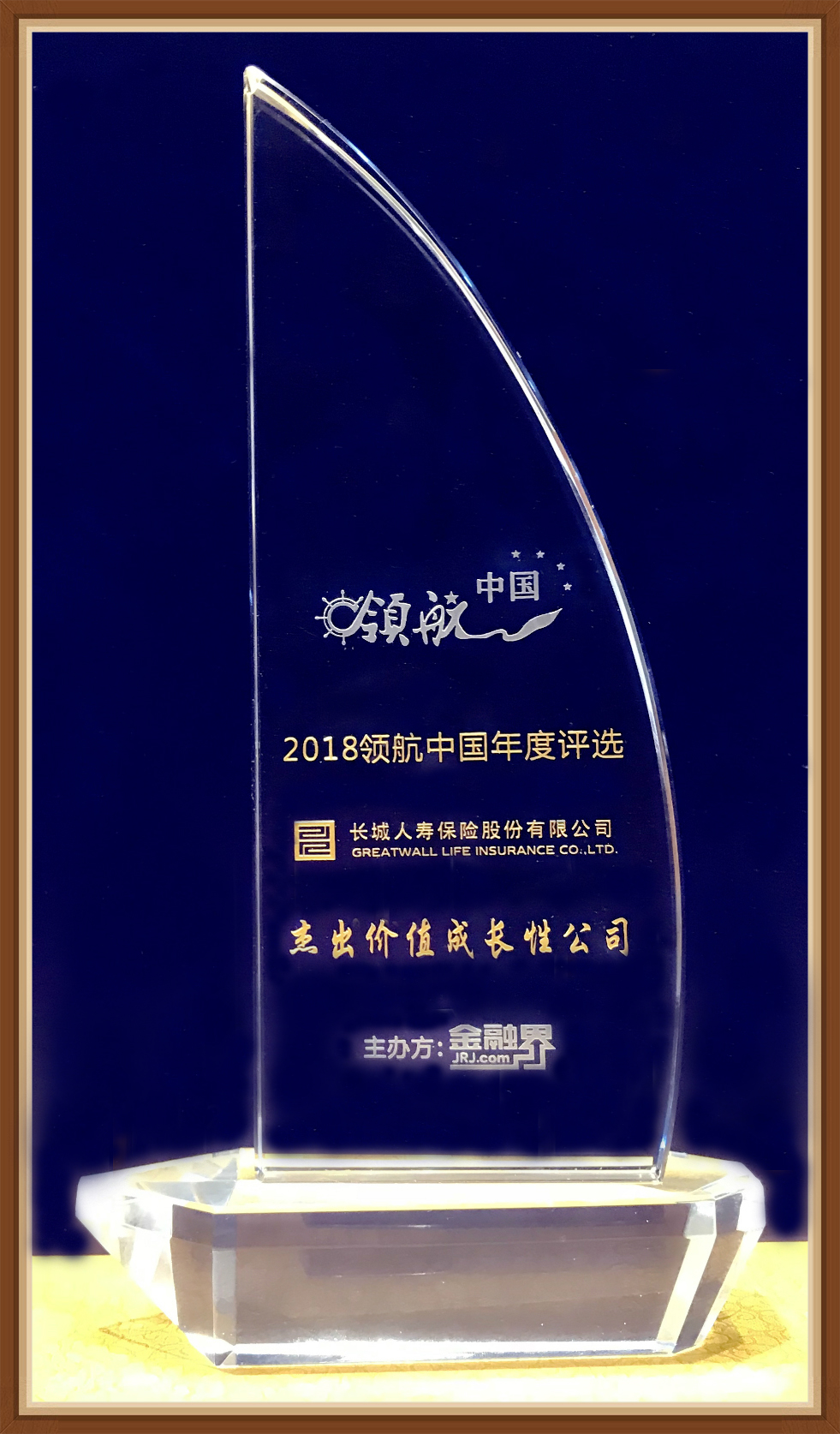 2018年12月13日,由金融界网站主办的第三届智能金融国际论坛暨2018金融界“领航中国”年度盛典在北京隆重召开。颁奖典礼上揭晓了多项大奖,长城人寿以其积极稳健的发展策略及公司持续的价值提升能力脱颖而出,荣膺2018领航中国“杰出价值成长性公司”。